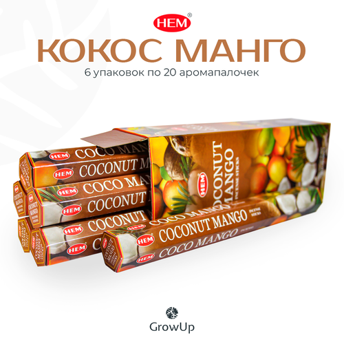 Набор HEM Кокос Манго - 6 упаковок по 20 шт - ароматические благовония, палочки, Coconut Mango - Hexa ХЕМ 101764992166