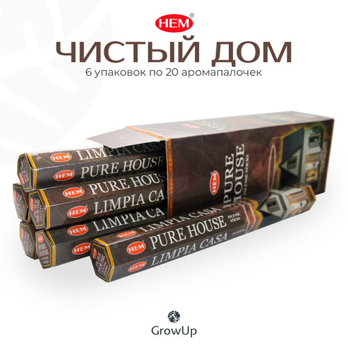 Набор HEM Чистый дом - очищение дома - 6 упаковок по 20 шт - ароматические благовония, палочки, Pure House - аромат древесный, сладкий с нотками ванили - Hexa ХЕМ 101765015803
