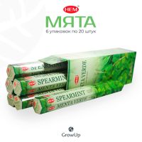 Набор HEM Мята - 6 упаковок по 20 шт - ароматические благовония, палочки, Spearmint - Hexa ХЕМ 101766555228