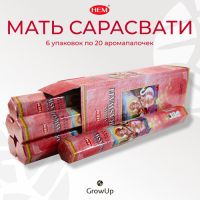 Набор HEM Мать Сарасвати - 6 упаковок по 20 шт - ароматические благовония, палочки, Ma Saraswati - аромат легкий, немного пряный - Hexa ХЕМ 102878802515