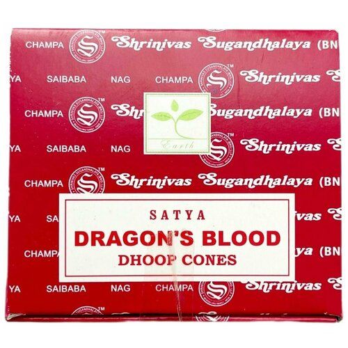 Satya Кровь Дракона - 12 шт, ароматические благовония, конусовидные, конусы с подставкой, Dragons Blood - Сатия, Сатья 101773750312