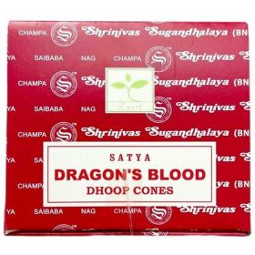 Satya Кровь Дракона - 12 шт, ароматические благовония, конусовидные, конусы с подставкой, Dragons Blood - Сатия, Сатья