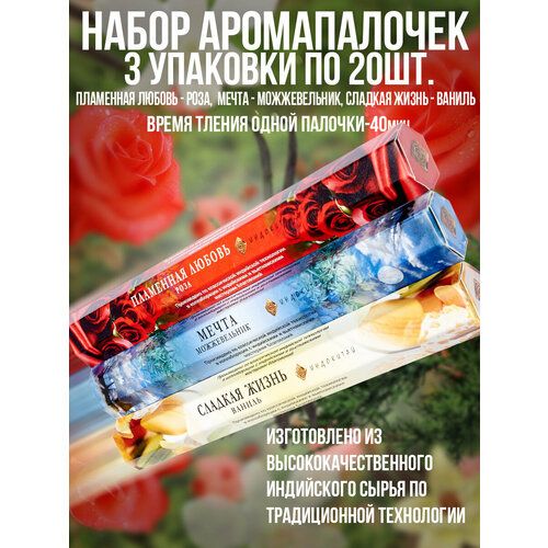 Найти - Аромапалочки Индокитай. Набор из 3 упаковок по 20 штук: роза, можжевельник, ваниль.