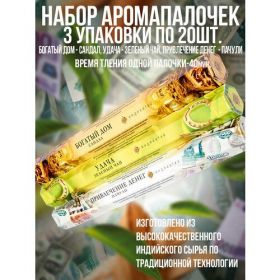 Найти - Благовония, Ароматические палочки, Набор аромапалочек Индокитай3упак по 20шт: Пачули, Сандал, Зеленый чай