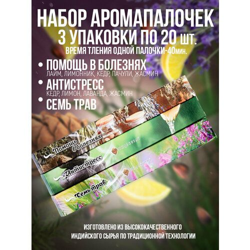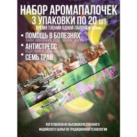Найти - Благовония, Ароматические палочкиИндокитай(набор 60шт/3 аромата): Помощь в болезнях, Семь трав, Антистресс