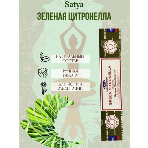 NAG CHAMPA GREEN CITRONELLA (Зеленая Цитронелла) - натуральные благовония самых известных индийских производителей - «Satya».