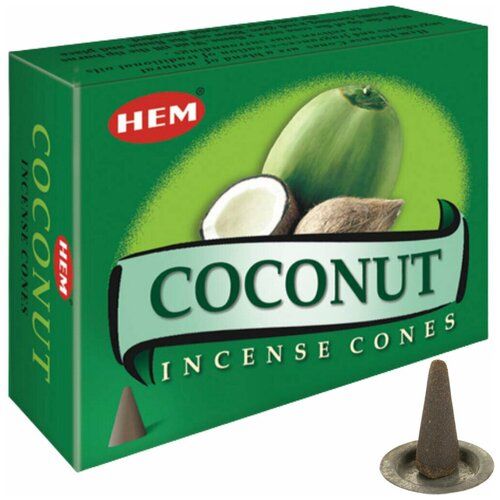 HEM COCONUT (Кокос) - натуральные конусные благовония из самого сердца Индии ароматизатор для дома, как парфюм для комнаты, спальни, гостиной, кухни и туалета, создают легкие и приятные запахи для дома, также арома палочки индийские используют как благовония для йоги, духовных практик, для расслабления и релаксации, для улучшения эмоционального состояния, используется как антистресс и антидепрессант.