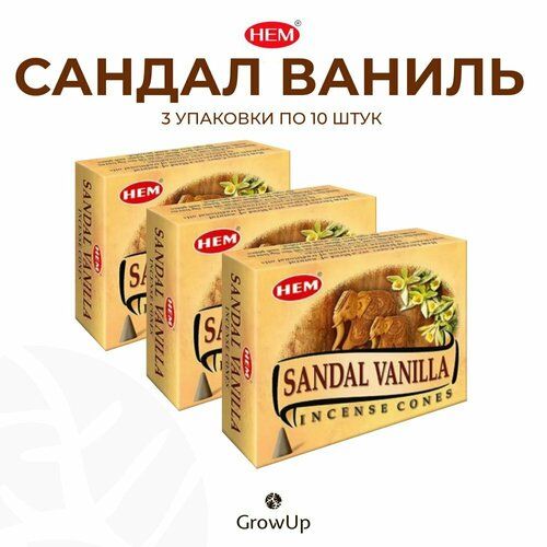 Набор HEM Сандал Ваниль - 3 упаковки по 10 шт - ароматические благовония, конусовидные, конусы с подставкой, Sandal Vanilla - ХЕМ 101836511294
