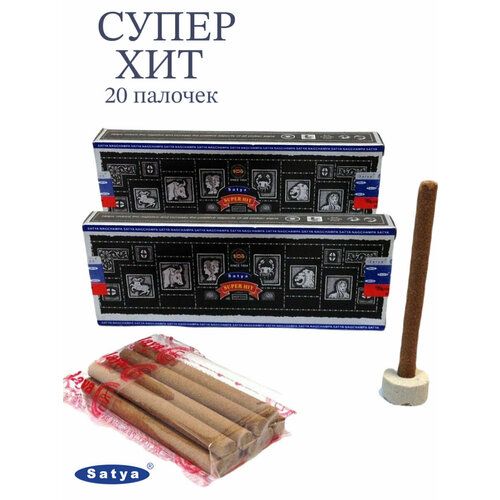 Набор Satya Супер Хит - 2 упаковки по 10 шт, ароматические благовония, безосновные палочки, Super Hit - Сатия, Сатья 101836511306