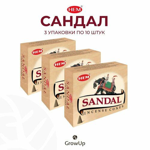 Набор HEM Сандал - 3 упаковки по 10 шт - ароматические благовония, конусовидные, конусы с подставкой, Sandal - ХЕМ 101836561696