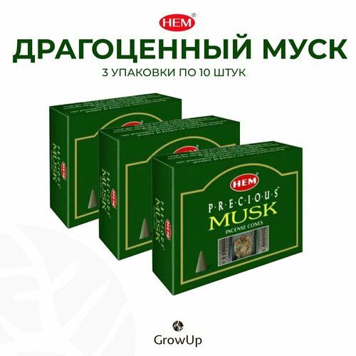 Набор HEM Драгоценный мускус (Муск) - 3 упаковки по 10 шт - ароматические благовония, конусовидные, конусы с подставкой, Precious Musk - ХЕМ