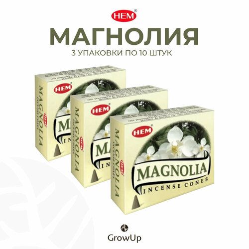 Набор HEM Магнолия - 3 упаковки по 10 шт - ароматические благовония, конусовидные, конусы с подставкой, Magnolia - ХЕМ