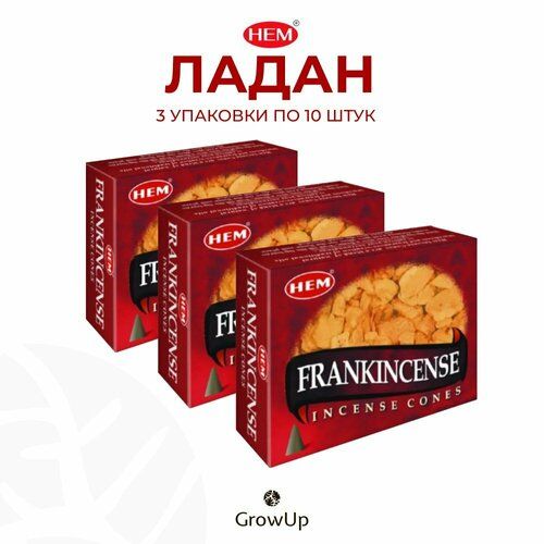 Набор HEM Ладан - 3 упаковки по 10 шт - ароматические благовония, конусовидные, конусы с подставкой, Frankincense - ХЕМ 101836563621