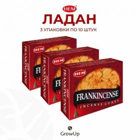 Набор HEM Ладан - 3 упаковки по 10 шт - ароматические благовония, конусовидные, конусы с подставкой, Frankincense - ХЕМ