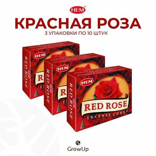 Набор HEM Красная роза - 3 упаковки по 10 шт - ароматические благовония, конусовидные, конусы с подставкой, Red Rose - ХЕМ 101838592069