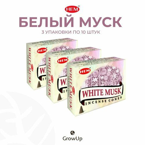 Набор HEM Белый мускус (Муск) - 3 упаковки по 10 шт - ароматические благовония, конусовидные, конусы с подставкой, White Musk - ХЕМ