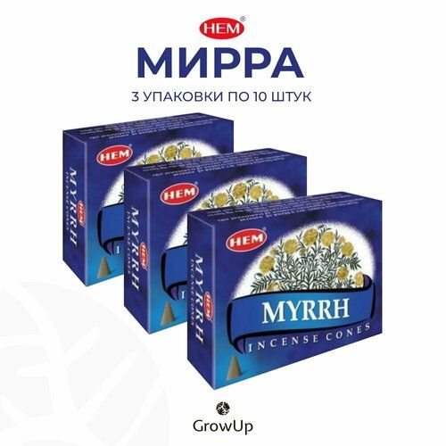 Набор HEM Мирра - 3 упаковки по 10 шт - ароматические благовония, конусовидные, конусы с подставкой, Myrrh - ХЕМ