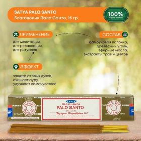 Найти - Благовония палочки ароматические индийские Пало Санто для ароматерапии и медитации дома, Satya Palo Santo, 15г