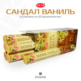 HEM Сандал Ваниль - 6 упаковок по 20 шт - ароматические благовония, палочки, Sandal Vanilla - Hexa ХЕМ