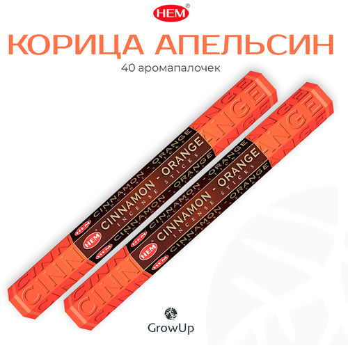 Палочки ароматические благовония HEM ХЕМ Корица Апельсин Cinnamon Orange, 2 упаковки, 40 шт