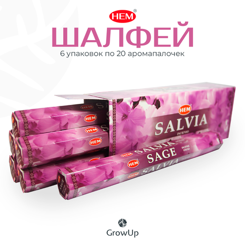 Набор HEM Шалфей - 6 упаковок по 20 шт - ароматические благовония, палочки, Sage - Hexa ХЕМ