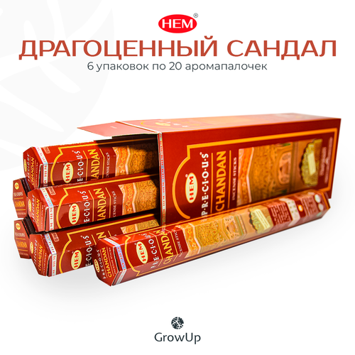 Набор HEM Драгоценный Сандал Чандан - 6 упаковок по 20 шт - ароматические благовония, палочки, Precious Chandan - Hexa ХЕМ
