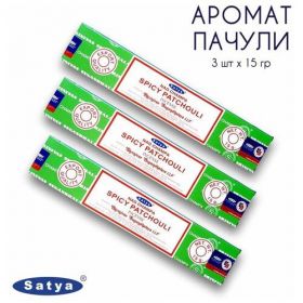 Набор Satya Аромат Пачули - 3 упаковки по 15 гр - ароматические благовония, палочки, Spicy Patchouli - Сатия, Сатья