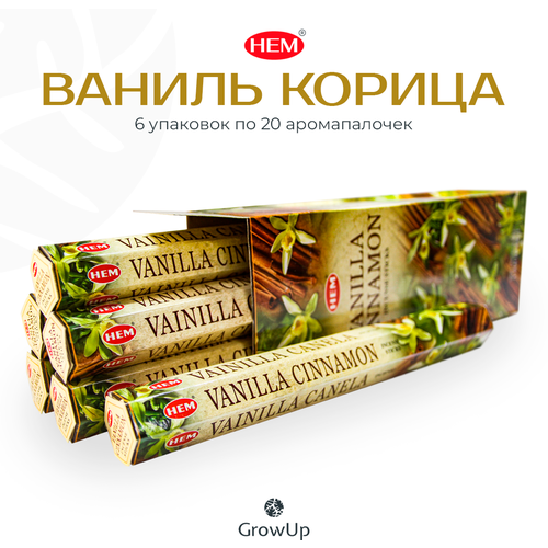 Набор HEM Ваниль Корица - 6 упаковок по 20 шт - ароматические благовония, палочки, Vanilla Cinnamon - Hexa ХЕМ 101925851769