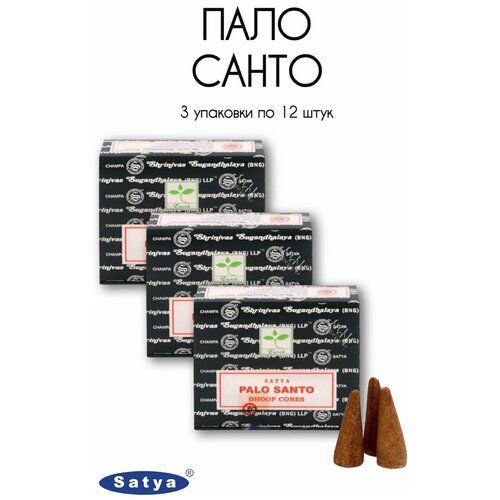 Набор Satya Пало Санто Священное дерево - 3 упаковки по 12 шт - ароматические благовония, конусовидные, конусы с подставкой, Palo Santo - Сатия, Сатья 101930439416