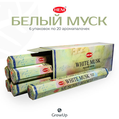 Набор HEM Белый Мускус (Муск) - 6 упаковок по 20 шт - ароматические благовония, палочки, White Musk - Hexa ХЕМ
