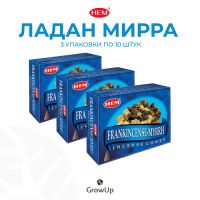 Набор HEM Ладан Мирра - 3 упаковки по 10 шт - ароматические благовония, конусовидные, конусы с подставкой, Frankincense Myrrh - ХЕМ 102225738665