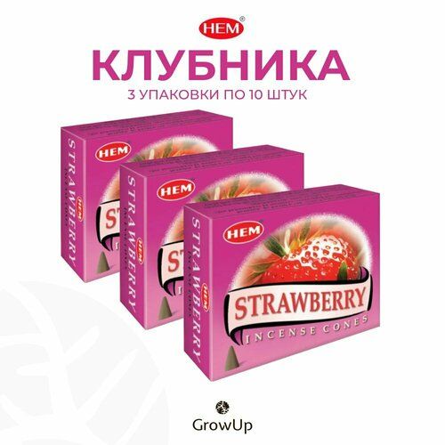 Набор HEM Клубника - 3 упаковки по 10 шт - ароматические благовония, конусовидные, конусы с подставкой, Strawberry - ХЕМ 101940549209