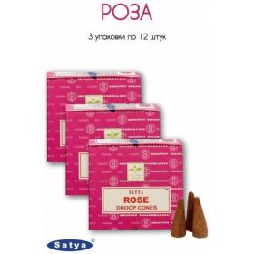 Набор Satya Роза - 3 упаковки по 12 шт - ароматические благовония, конусовидные, конусы с подставкой, Rose - Сатия, Сатья