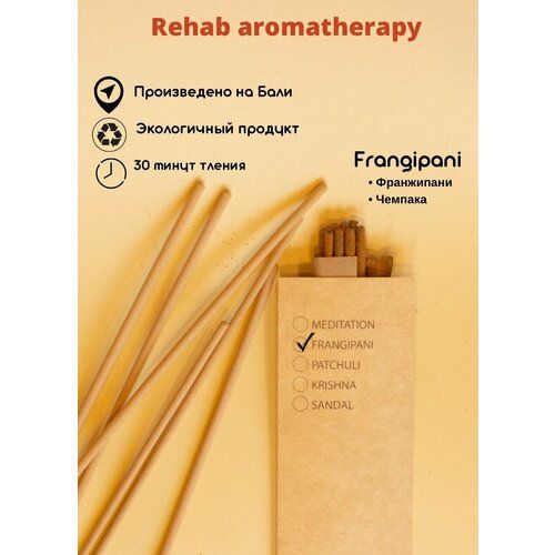Благовония созданы на основе самых легких цветов и трав острова. Основными компонентами являются Франжипани и Чемпака. Этот аромат позволяет обогатить свой дух и энергетику, достичь гармоничного слияния с внешним миром и дать ощущение спокойствия.