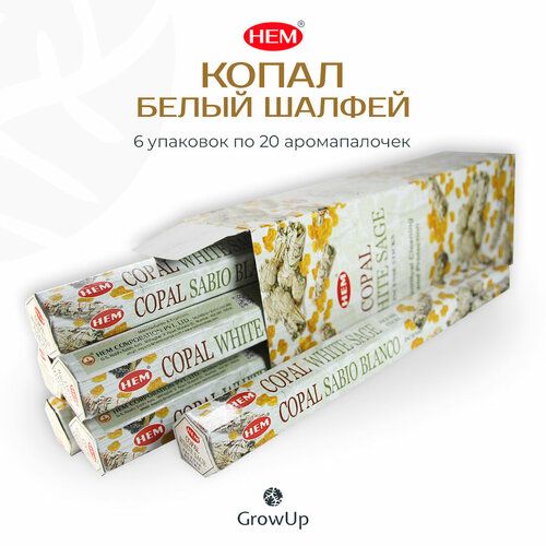 Набор HEM Копал Белый Шалфей - 6 упаковок по 20 шт - ароматические благовония, палочки, Copal White Sage - Hexa ХЕМ 101993978125