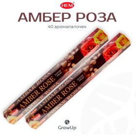 Набор HEM Амбер (Амбра, Янтарь) Роза - 2 упаковки по 20 шт - ароматические благовония, палочки, Amber Rose - Hexa ХЕМ 102013789885