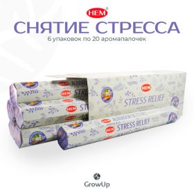 Набор HEM Снятие стресса - 6 упаковок по 20 шт - ароматические благовония, палочки, Stress Relief - аромат сладкий, пряный, цветочный - Hexa ХЕМ 102047172960
