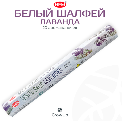 НАЙТИ ВЫГОДНЕЕ - HEM Белый шалфей Лаванда - 20 шт, ароматические благовония, палочки, White Sage Lavender - Hexa ХЕМ