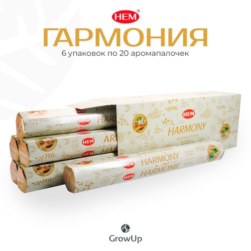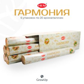 Набор HEM Гармония - 6 упаковок по 20 шт, ароматические благовония, палочки, Harmony - аромат древесный с нотками пачули - Hexa ХЕМ 102047448401