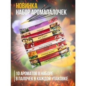 НАЙТИ ВЫГОДНЕЕ - Благовония Индокитай Аромапалочки, 10 ароматов, 8 палочек в упаковке, всего 80шт