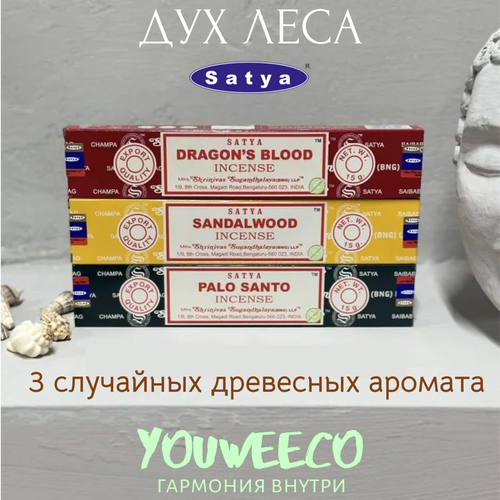 НАЙТИ ВЫГОДНЕЕ - Благовония Набор Satya Дух леса - The Spirit of the Forest - 3 пачки по 15 гр. / Ароматы для дома