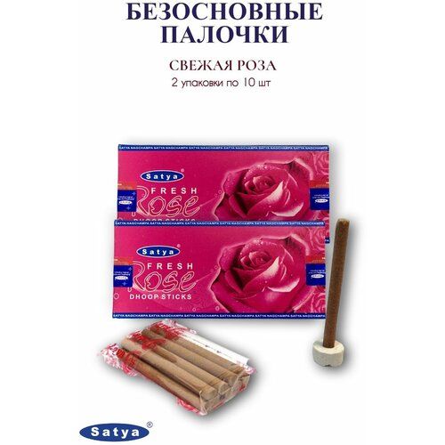 Набор Satya Свежая роза - 2 упаковки по 10 шт, ароматические благовония, безосновные палочки, Fresh Rose Dhoop Sticks - Сатия, Сатья 102077450942
