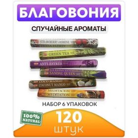 Шесть упаковок случайных благовоний, по 20 палочек в каждой. Всего 120 палочек.
