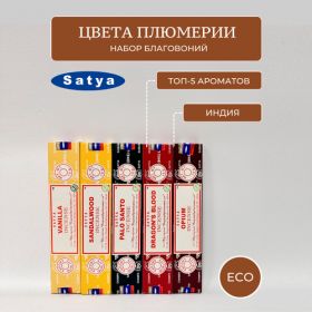 НАЙТИ ВЫГОДНЕЕ - Ароматические палочки / Благовония Набор Satya Цвета плюмерии - 5 пачек по 15 гр.