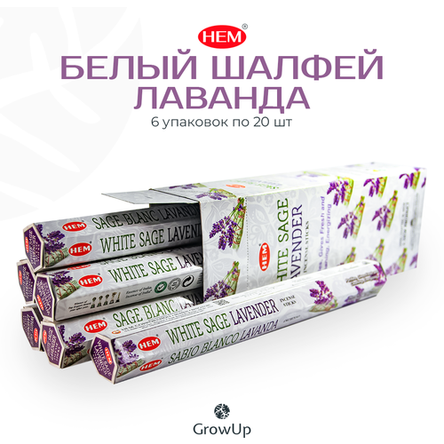 Набор HEM Белый шалфей Лаванда - 6 упаковок по 20 шт - ароматические благовония, палочки, White Sage Lavender - Hexa ХЕМ 102159888904