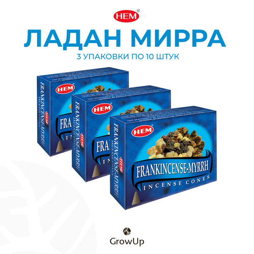 Набор HEM Ладан Мирра - 3 упаковки по 10 шт - ароматические благовония, конусовидные, конусы с подставкой, Frankincense Myrrh - ХЕМ 102225738665