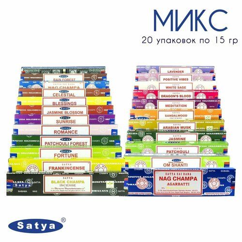 Набор Satya Микс - 20 упаковок по 15 гр - ароматические благовония, палочки, Mix aroma - Сатия, Сатья 102225745747
