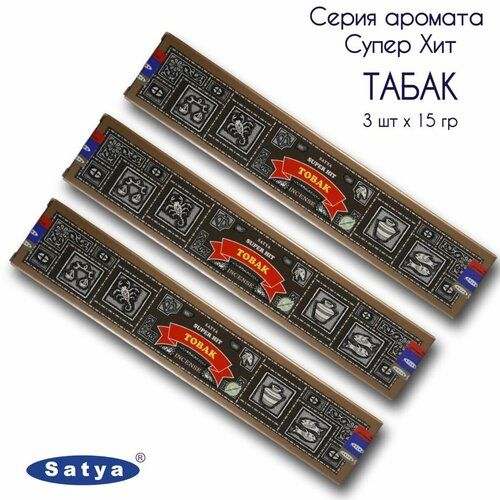 Набор Satya Табак серия Супер Хит - 3 упаковки по 15 гр - ароматические благовония, палочки, Super Hit Series Tobak - Сатия, Сатья 102225745751