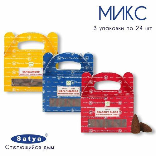 Набор Satya Микс - 3 упаковки по 24 шт - ароматические благовония, пуля, стелющийся дым, Mix aroma - Сатия, Сатья 102225745770