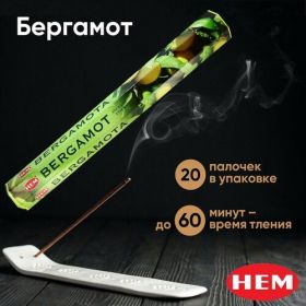 Натуральные индийские благовония HEM Бергамот (Bergamot), ароматические палочки 20 шт.
